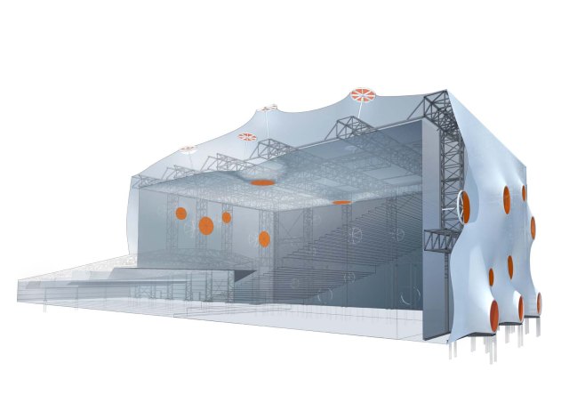 Right on cue Lina Kleinholz of Magma Architecture’s shooting pavilion at the London Olympic Games had produced its first Olympic medal that day. Designed for just a few weeks use in a field in central London, this building had allowed the contestants to be a part of the Games for the first time. Instead of being based in some remote existing shooting range their event takes place in a dedicated facility relatively handy for potential audiences. Evocative and playful it has already inspired other sporting event organisers to try and hire it for forthcoming games in Glasgow and Canada.