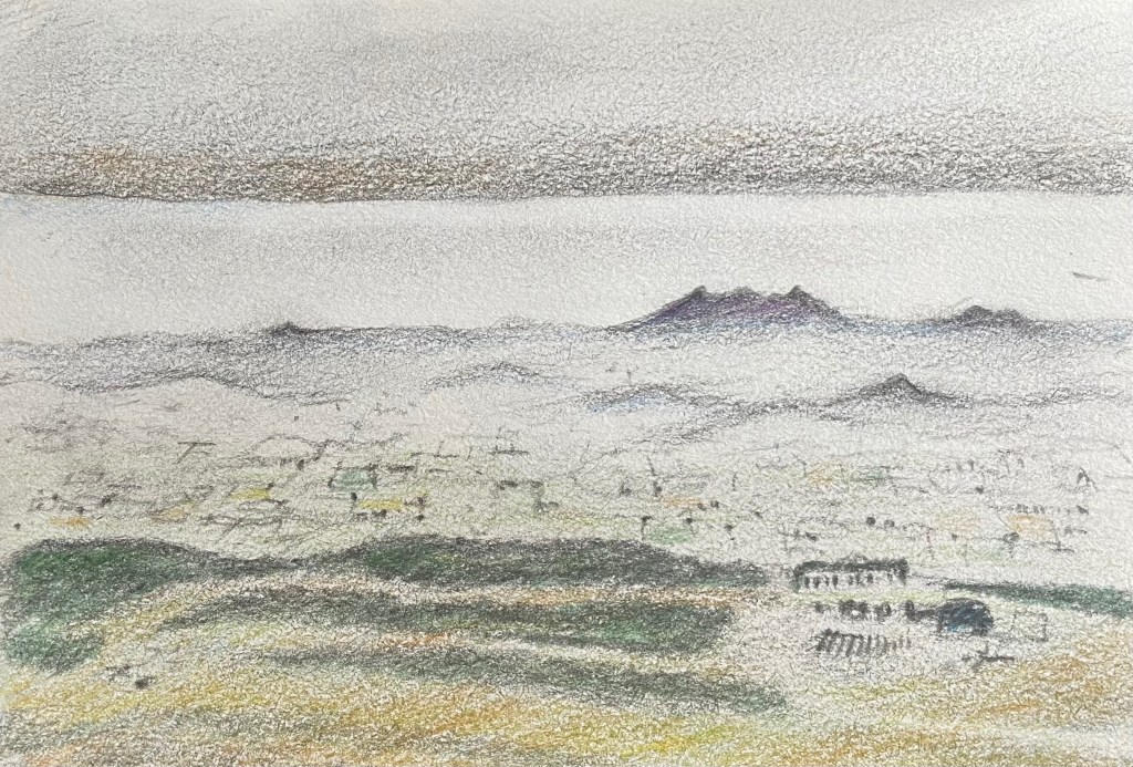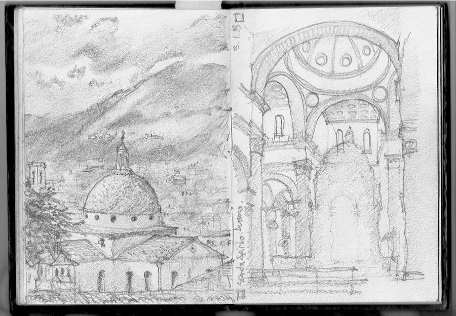 I like to draw when I’m out walking – in the city or the countryside. It helps me relax a bit more during those breaks, but there is also an urgency there – don’t think too much about what you are doing because you need to get on your way again soon. And of course the drawing then becomes a record of when you were in that place at that particular time – it can be a lot of fun to look back on old sketchbooks.